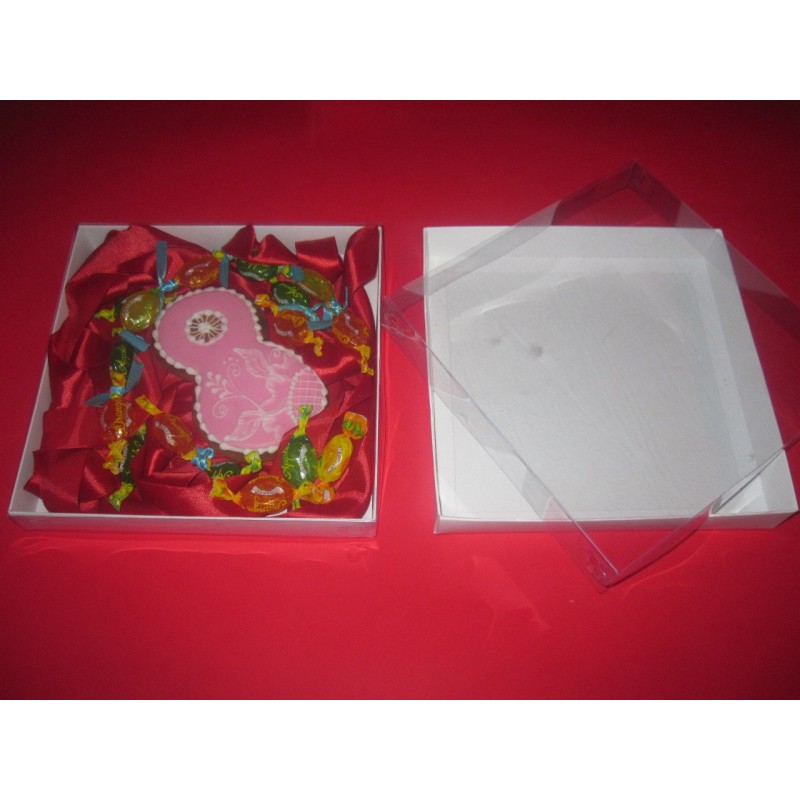 Картонна коробка для пряників, сувенірів, біжутерії.Кришка пластик, денце крейдований картон 280 гр/м.Розмір...