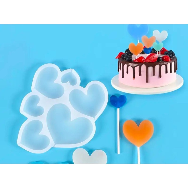 Силіконовий молд для льодяників "Серденьки", 6 шт. Розмір: