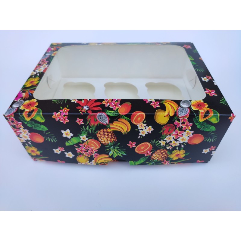 Коробка "Фруктовый рай" на 6 капкейков (прямоугольное окно).