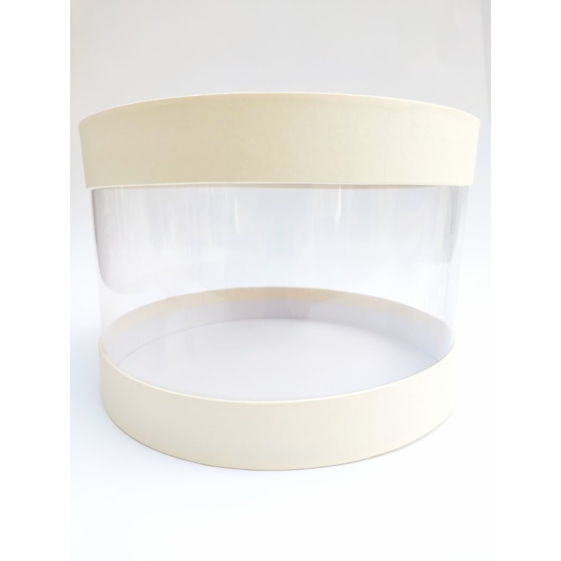 Коробка "Тубус" бежевая для муссовых тортов.Изготовлена из твердого переплетного картона и пластика.Размер:диаметр - 25...