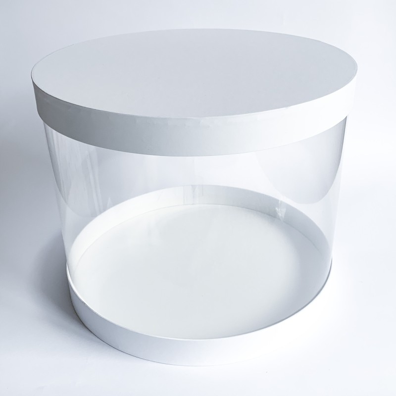 Коробка "Тубус" белая для муссовых тортов.Изготовлена из твердого переплетного картона и пластика.Размер:диаметр - 30.5...