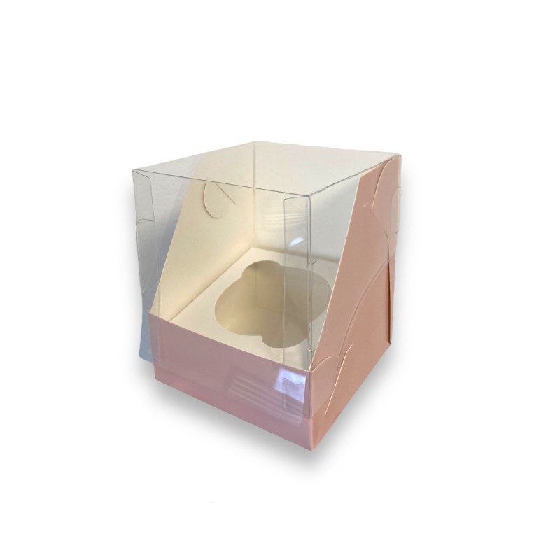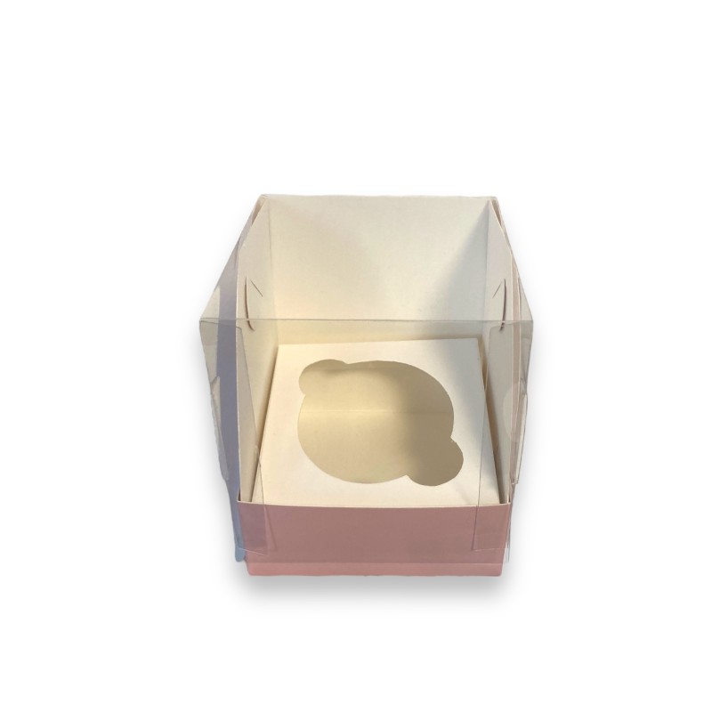 Коробка для 1 капкейка Акваріум рожева.Розмір:ширина - 90 мм.,довжина - 90 мм.,висота - 110 мм....