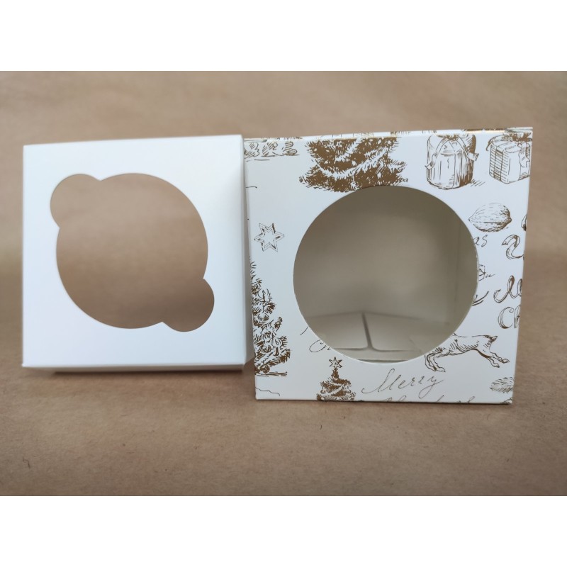 Святкова цільна коробочка з круглим вікном - плівкою виготовлена з якісного білого крейдованого картону із золотим друком. Призначена для транспортування кондитерських виробів, що захищає від попадання пилу, вологи, сонячних променів. Капкейк надійно фіксується всередині завдяки вкладишу, який можна забрати. Наші клієнти використовують коробочку з новорічною та різдвяною тематикою як подарункова упаковка до свят під чашки, шкарпетки, сувеніри, прикраси, біжутерію. Також може використовуватися для упаковки індивідуальних частування, сюрпризів для учасників. корпоративів, святкових урочистостей, колективних заходів.