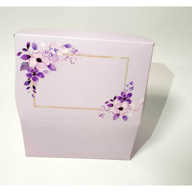 Самозбірна коробка для кондитерських виробів складається з однієї частини, має подвійні бічні борти.