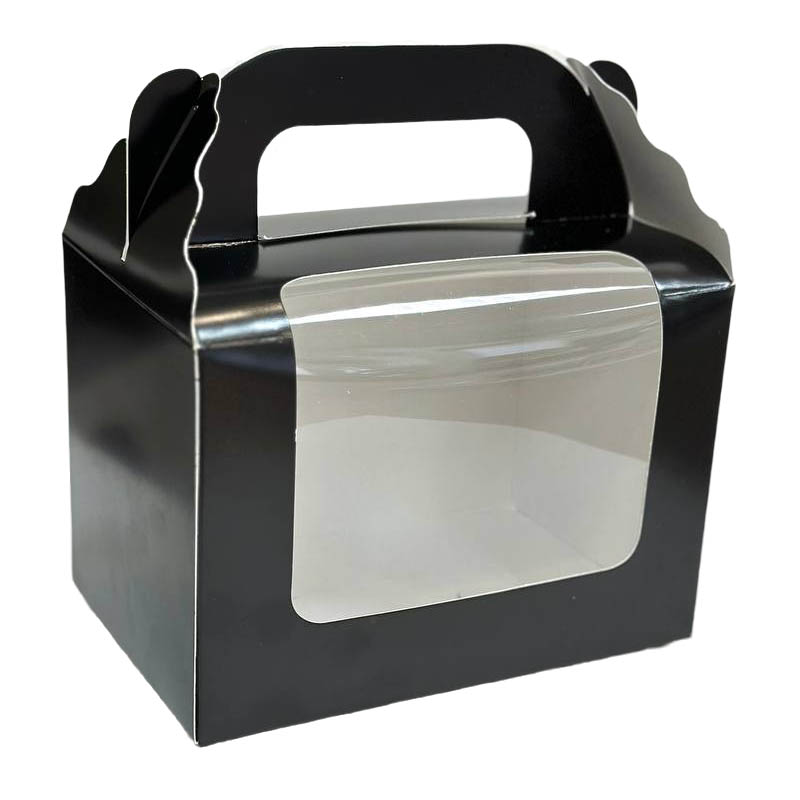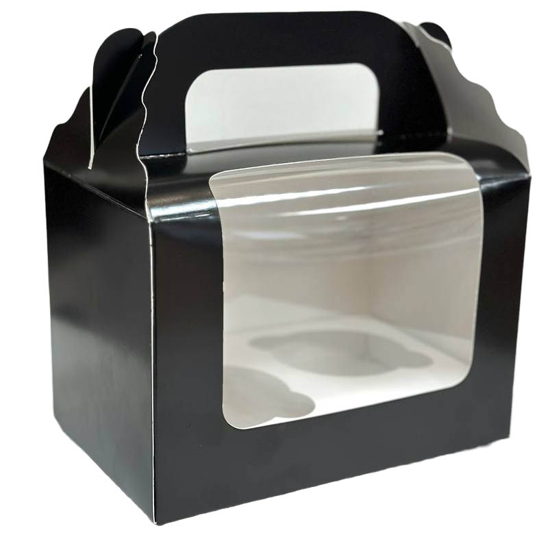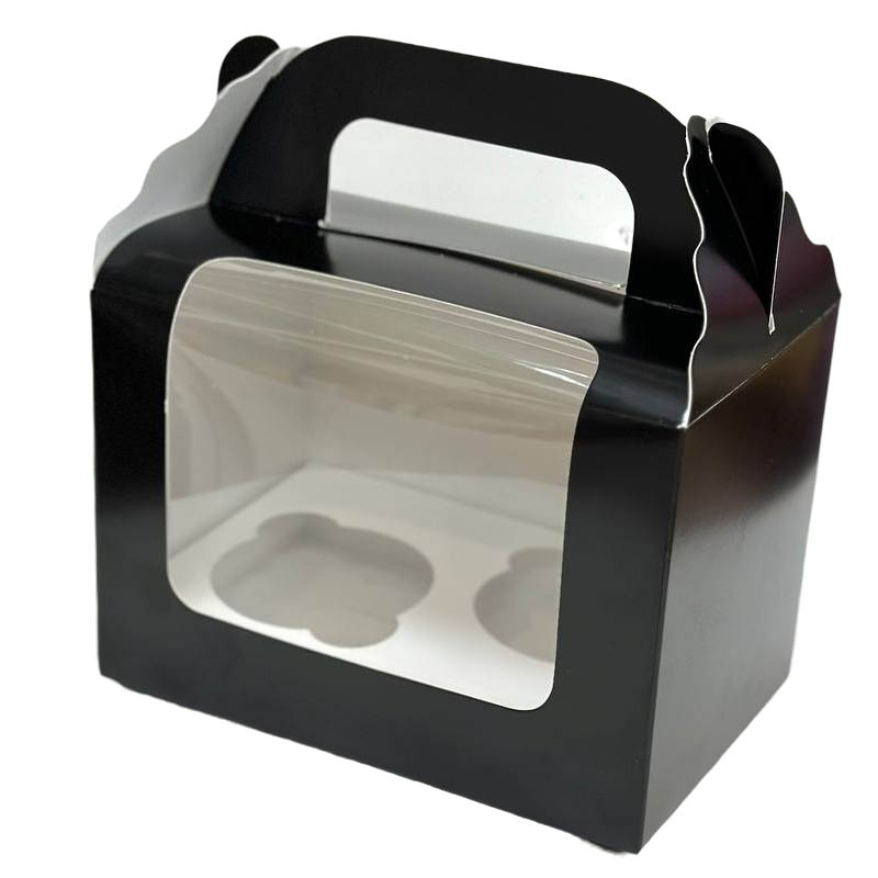 Коробка на 2 капкейки, чорна, вікно з прозорою плівкою.