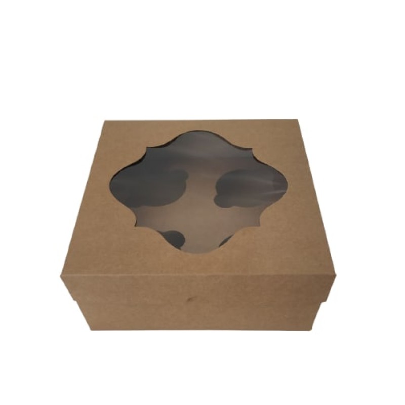 Коробка на 4 капкейки "Крафт" з фігурним вікном.Розмір:довжина - 200мм.,ширина - 200мм.,висота - 90мм...