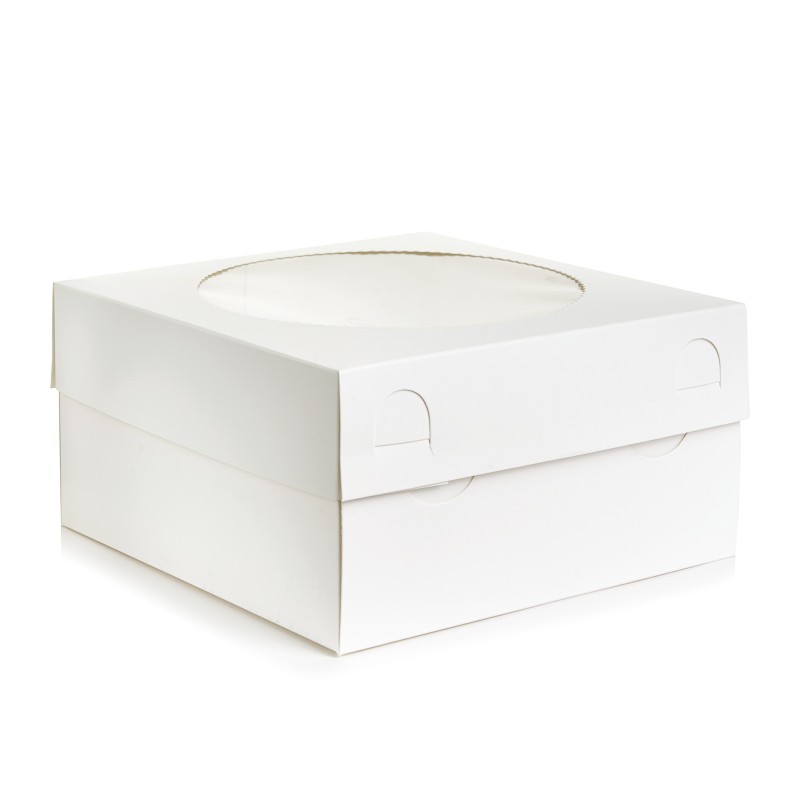 Виготовлена з якісного білого крейдованого картону. Складається з 3 частин: вкладиша, що надійно фіксує виріб усередині; дна та кришки з вікном, що дозволяє не тільки бачити ваш виріб, але й контролювати його цілісність під час перевезення. Призначена для транспортування кондитерських виробів, що захищає від попадання пилу, вологи, сонячних променів. Випікання зберігає свій первісний вигляд, не деформується під час перевезення. Вкладки можна прибрати, якщо коробка використовується для подарунків, сувенірів, наборів.