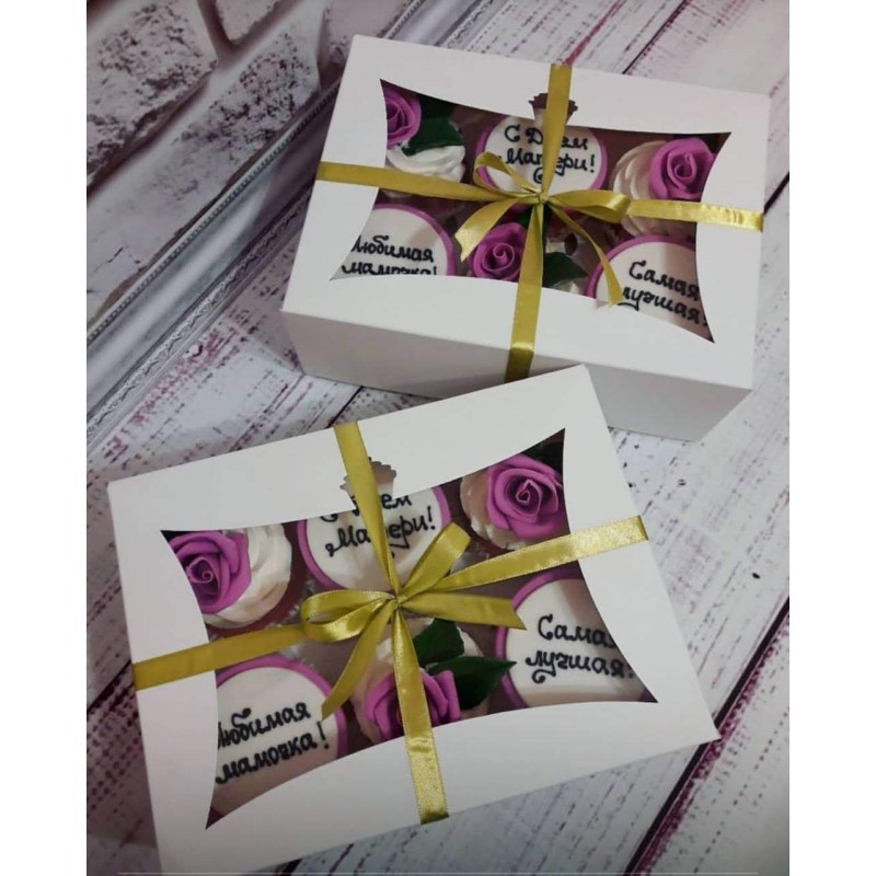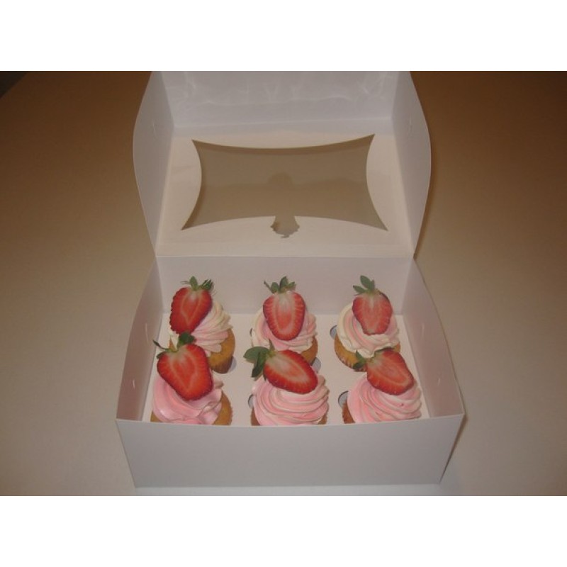 Цілісна коробочка, виготовлена з якісного білого крейдованого картону з вікном у вигляді кексу зверху, що дозволяє не тільки бачити ваш виріб, але й контролювати його цілісність під час перевезення. Призначена для транспортування кондитерських виробів, що захищає від попадання пилу, вологи, сонячних променів. Десерт зберігає свій первісний вигляд, не деформується під час перевезення. Капкейки надійно фіксуються всередині завдяки вкладкам, які можна прибрати, якщо коробка використовується для подарунків, сувенирів.