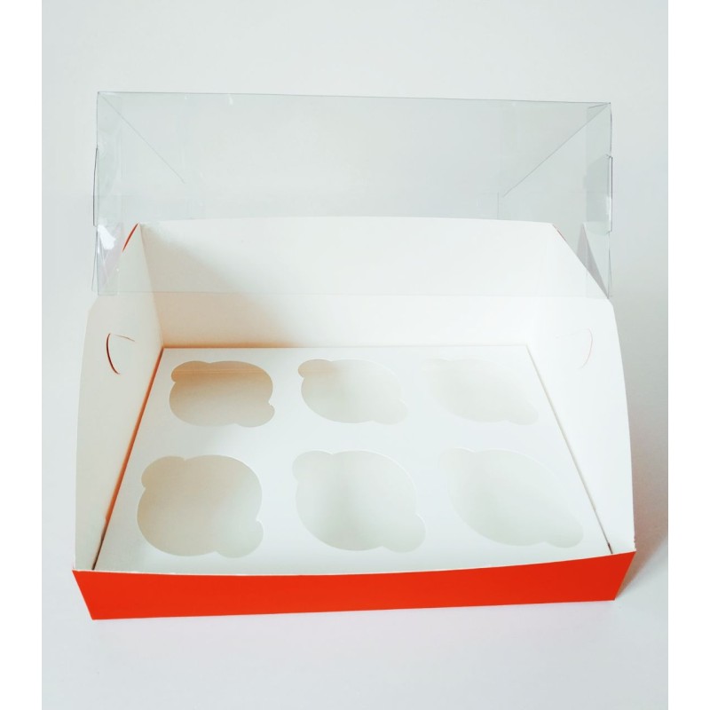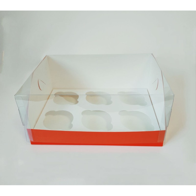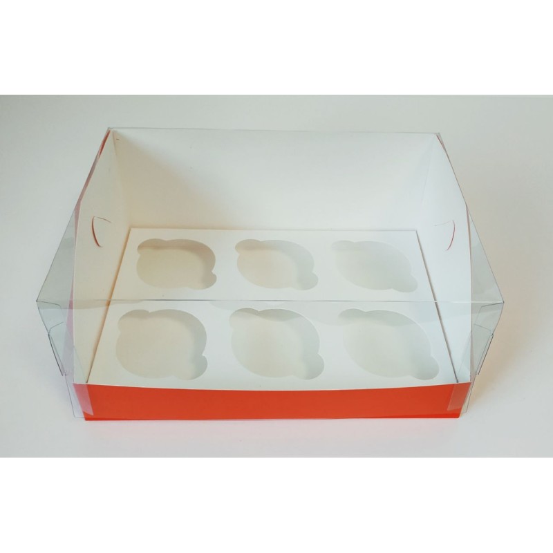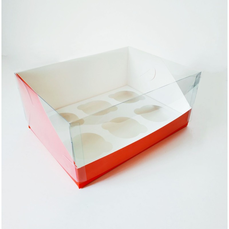 Коробка "Акваріум" на 6 капкейків червона.Розмір:довжина - 240мм.,ширина - 180мм.,висота - 110мм...