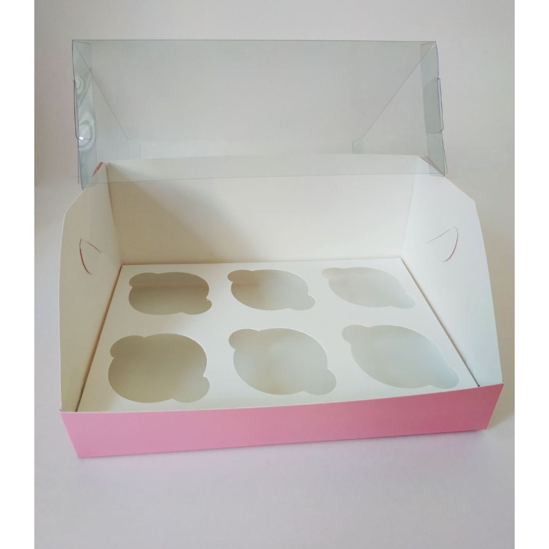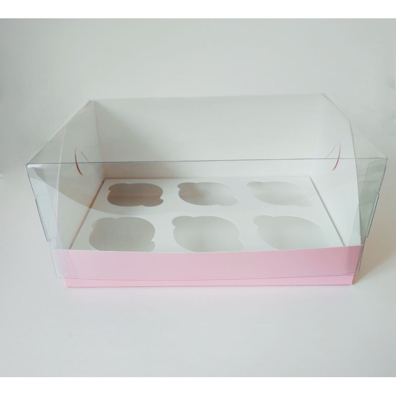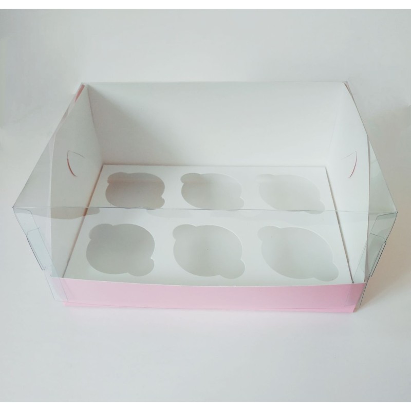 Коробка "Акваріум" на 6 капкейків рожева.Розмір:довжина - 240мм.,ширина - 180мм.,висота - 110мм...