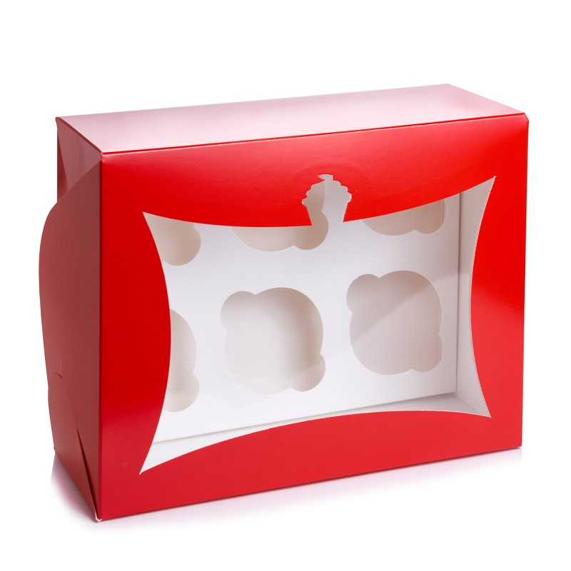 Коробка на 6 капкейків "Червона" з вікном - "кекс"