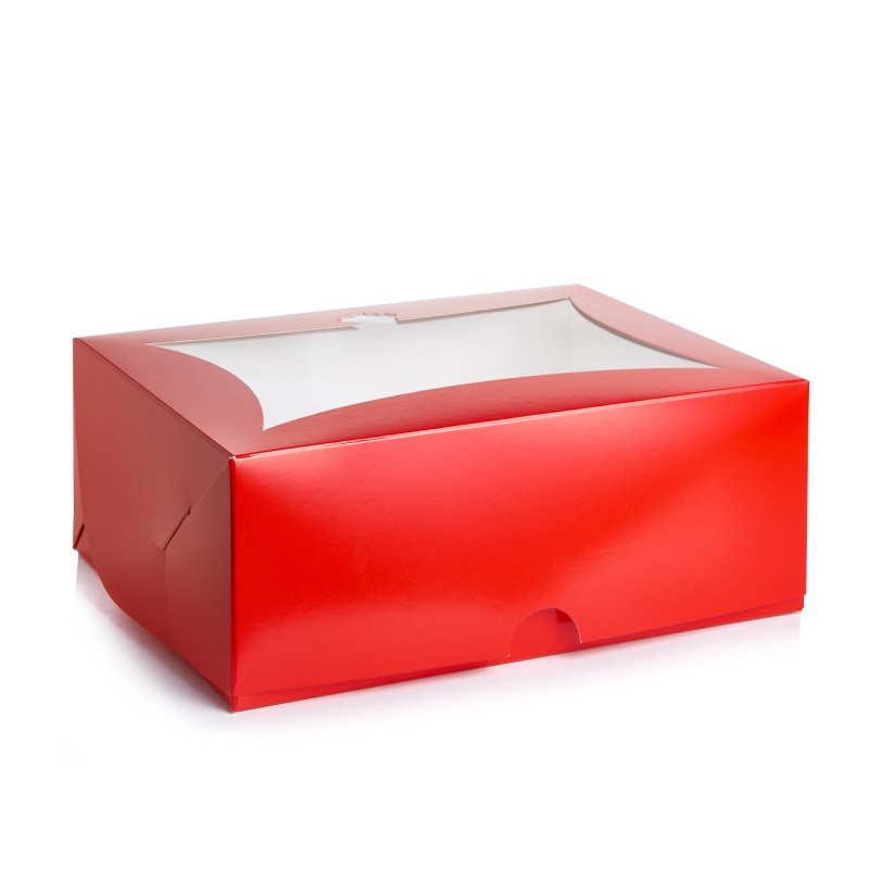 Яскрава цільна коробочка з вікном у вигляді кексу зверху, виготовлена з якісного білого крейдованого картону з червоним друком. Призначена для транспортування кондитерських виробів, що захищає від попадання пилу, вологи, сонячних променів. Випікання зберігає свій первісний вигляд, не деформується під час перевезення. Капкейки надійно фіксуються всередині завдяки вкладкам, які можна прибрати, якщо коробка використовується для подарунків, сувенірів.