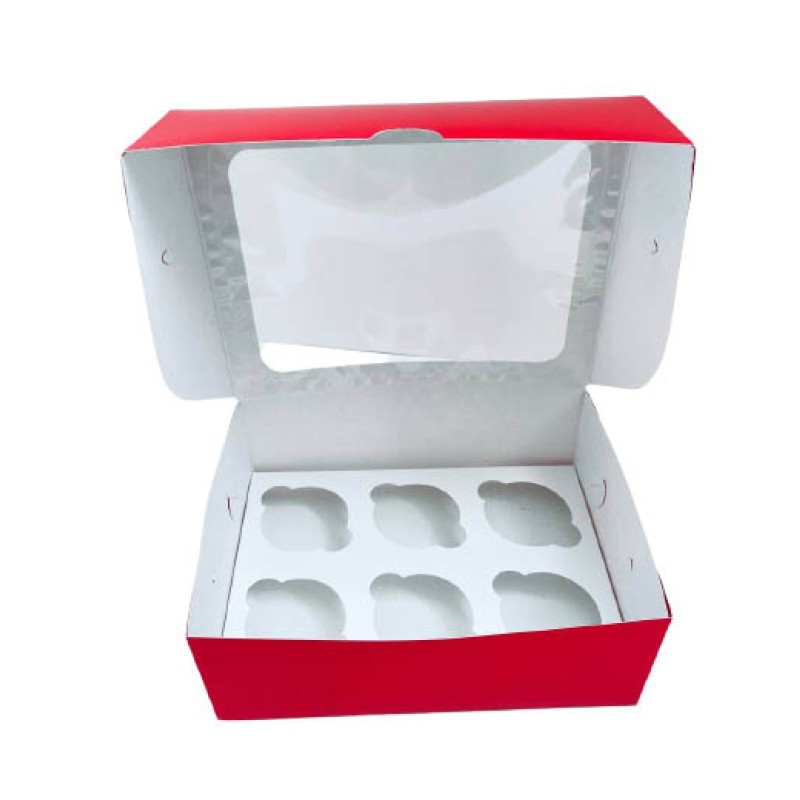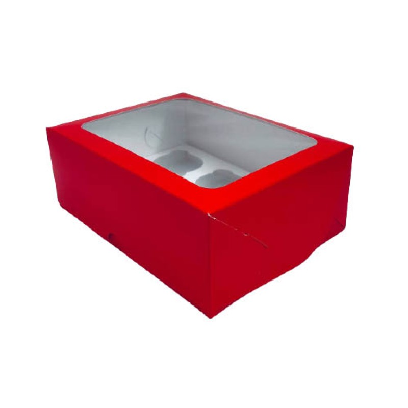 Коробка на 6 капкейків "Червона" з прямим вікном.