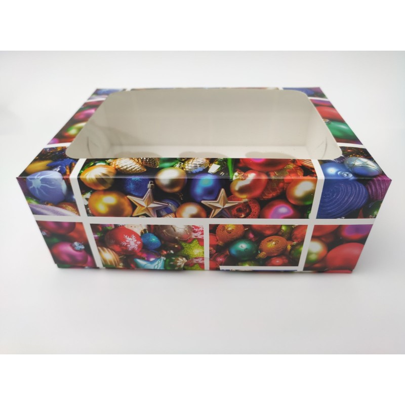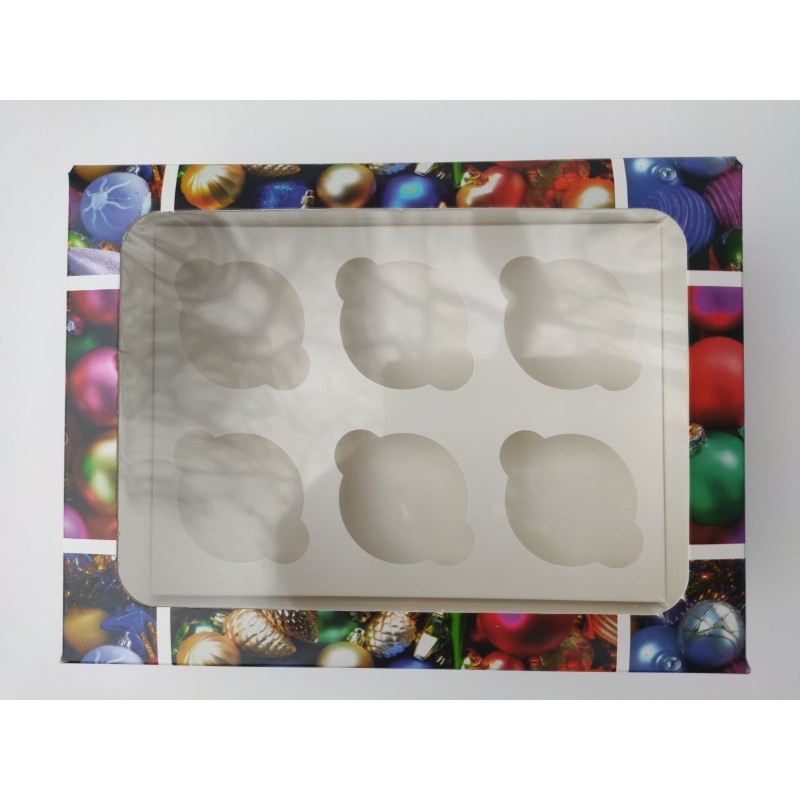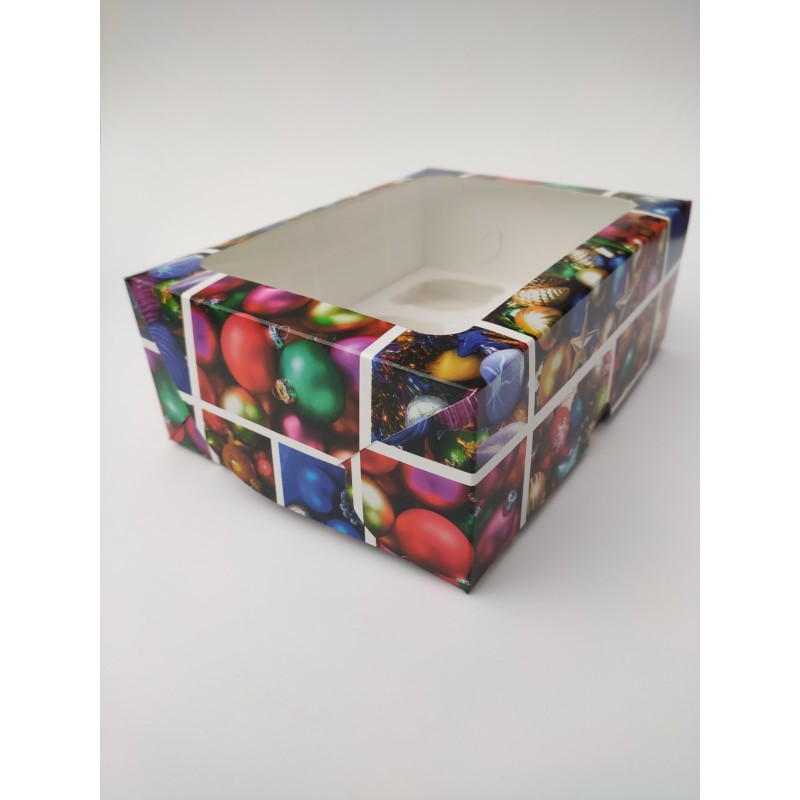 Коробка на 6 капкейків "Новорічні іграшки".