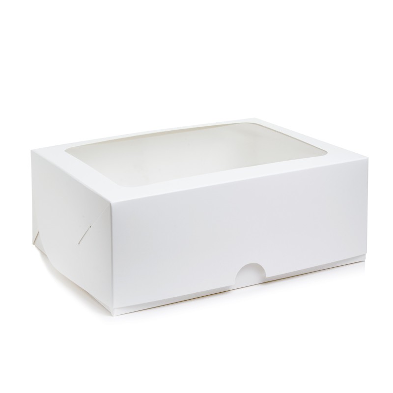 Цільна коробочка, виготовлена з якісного білого крейдованого картону. Прямокутне вікно дає можливість не тільки бачити ваш виріб, а й контролювати його цілісність під час перевезення. Висота 11 см дозволяє додатково прикрасити виріб. Призначена для транспортування кондитерських виробів, що захищає від попадання пилу, вологи, сонячних променів. Випікання зберігає свій первісний вигляд, не деформується під час перевезення. Капкейки надійно фіксуються всередині завдяки вкладкам, які можна прибрати, якщо коробка використовується для подарунків, сувенірів.