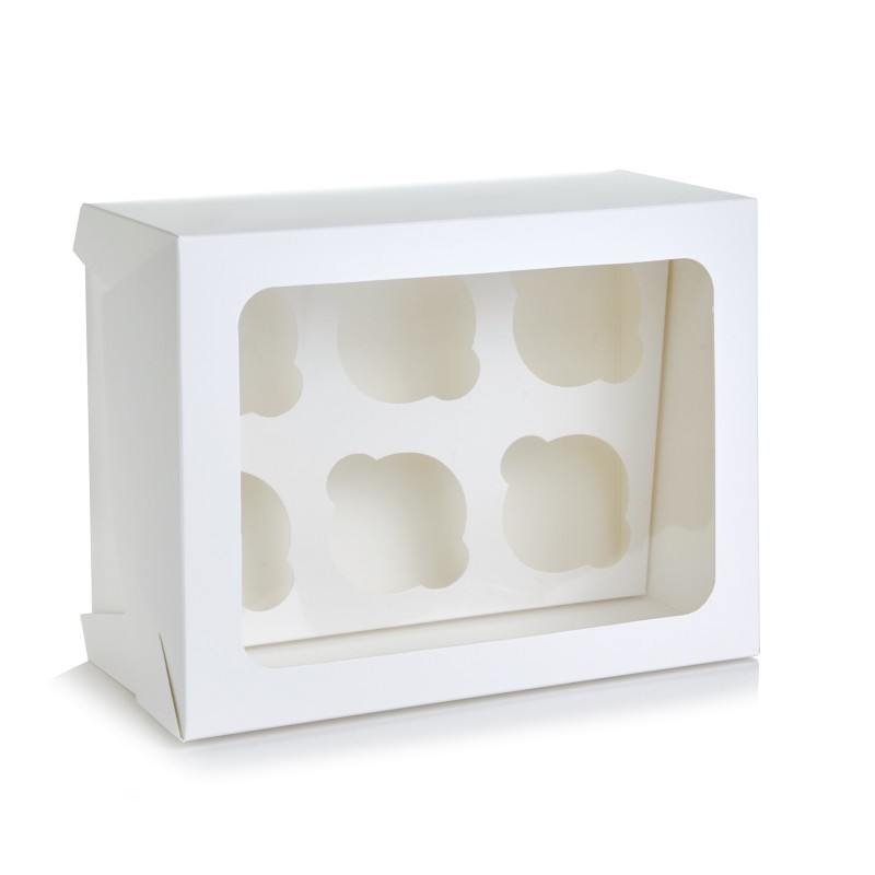 Коробка на 6 капкейків, прямокутне вікно.Цільна коробочка, виготовлена з якісного білого крейдованого картону....