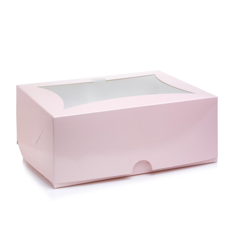 Цільна коробочка з вікном у вигляді кексу зверху, виготовлена з якісного білого крейдованого картону з рожевим друком. Призначена для транспортування кондитерських виробів, що захищає від попадання пилу, вологи, сонячних променів. Випікання зберігає свій первісний вигляд, не деформується під час перевезення. Капкейки надійно фіксуються всередині завдяки вкладкам, які можна прибрати, якщо коробка використовується для подарунків, сувенірів.