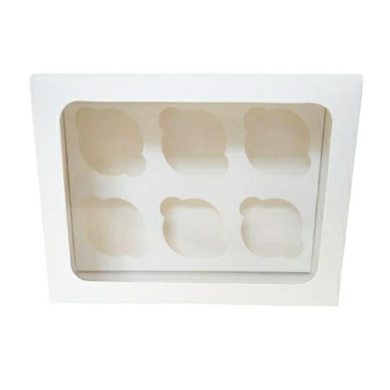 Цільна коробочка, виготовлена з якісного білого крейдованого картону з прямокутним вікном, що дозволяє не тільки бачити ваш виріб, але й контролювати його цілісність при перевезенні. Призначена для транспортування кондитерських виробів, що захищає від попадання пилу, вологи, сонячних променів. Випікання зберігає свій первісний вигляд, не деформується під час перевезення. Капкейки надійно фіксуються всередині завдяки вкладкам, які можна прибрати, якщо коробка використовується для подарунків, сувенірів.