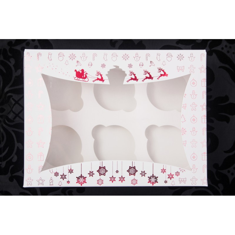 Новорічна коробка для 6 капкейків (червоне тиснення).