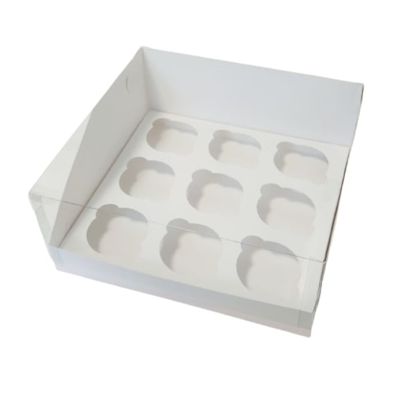 Коробка "Акваріум" на 9 капкейків біла.