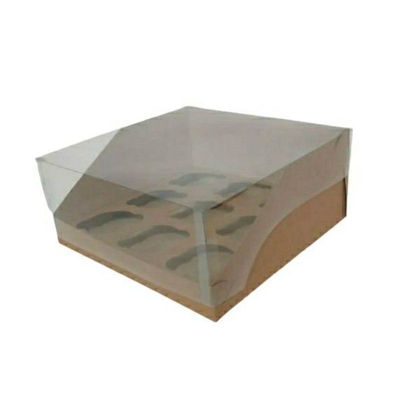Коробка "Акваріум" на 9 капкейків крафт.Розмір:довжина - 250мм.,ширина - 240мм.,висота - 110мм....
