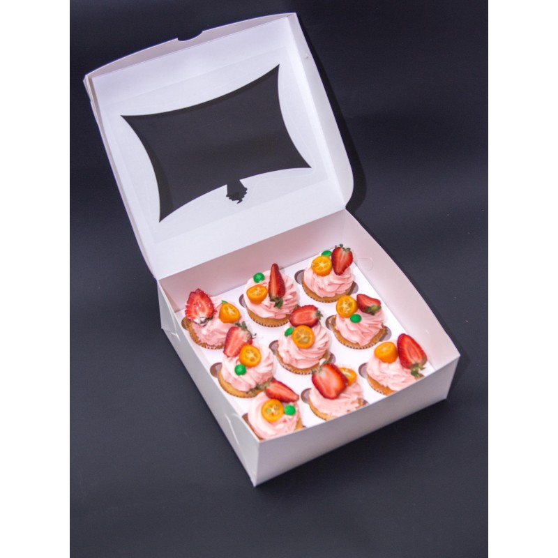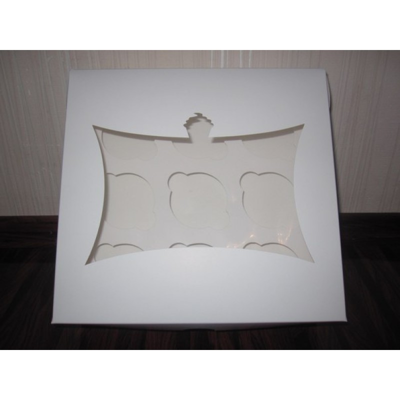 Картонна упаковка для 9 капкейків, вікно -"кекс". Цільна коробочка, виготовлена з якісного білого крейдованого...