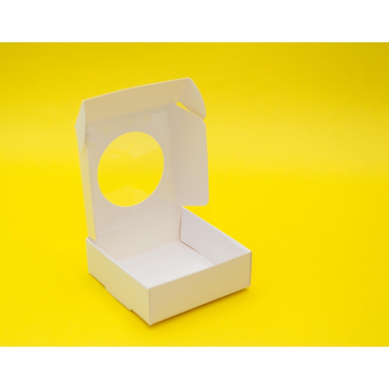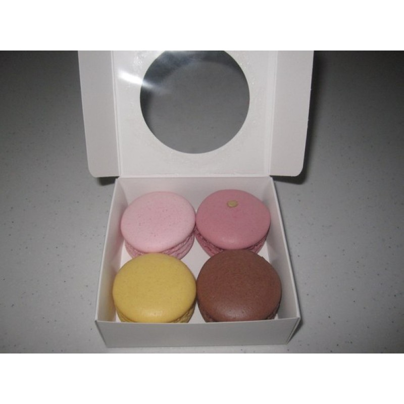 Картонна упаковка на 4 макаронси з віконцем.Розмір 100*100*35...
