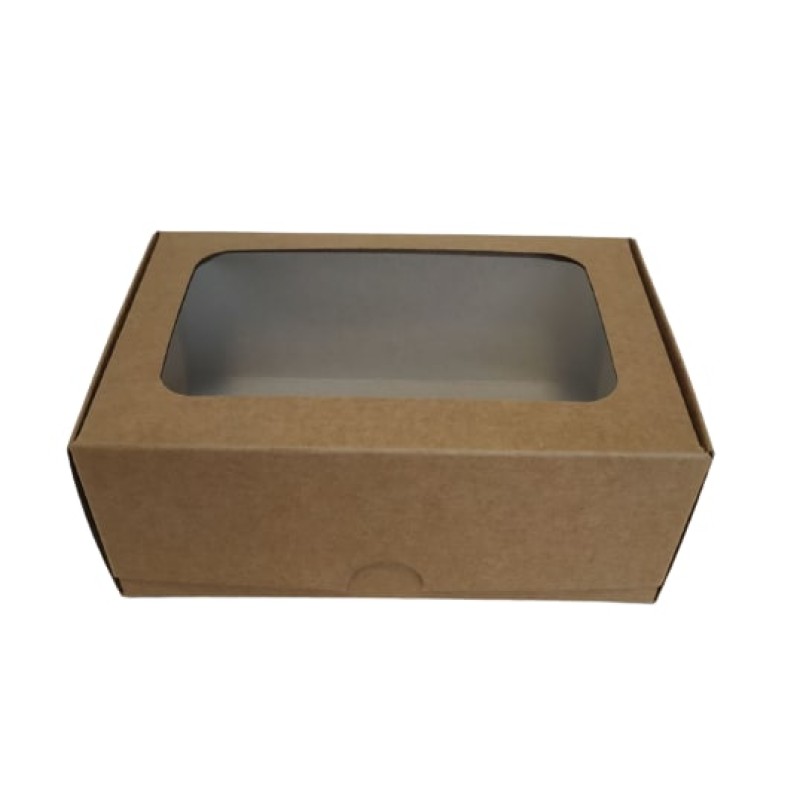 Коробка для макаронс на 8 шт, еклерів з вікном "Крафт".