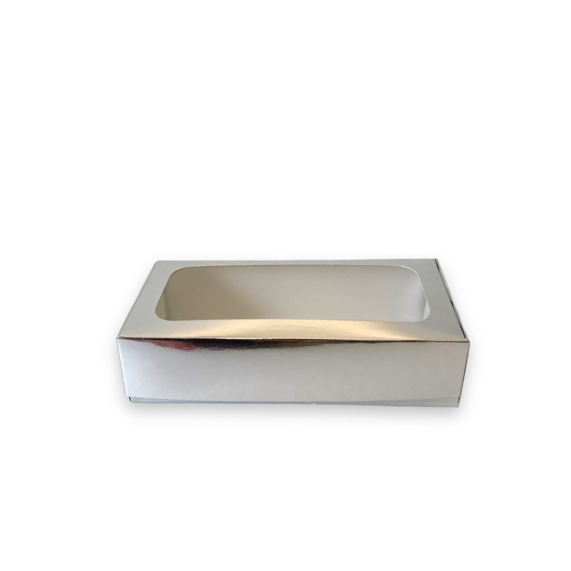 Коробка для макаронс з вікном, срібло.