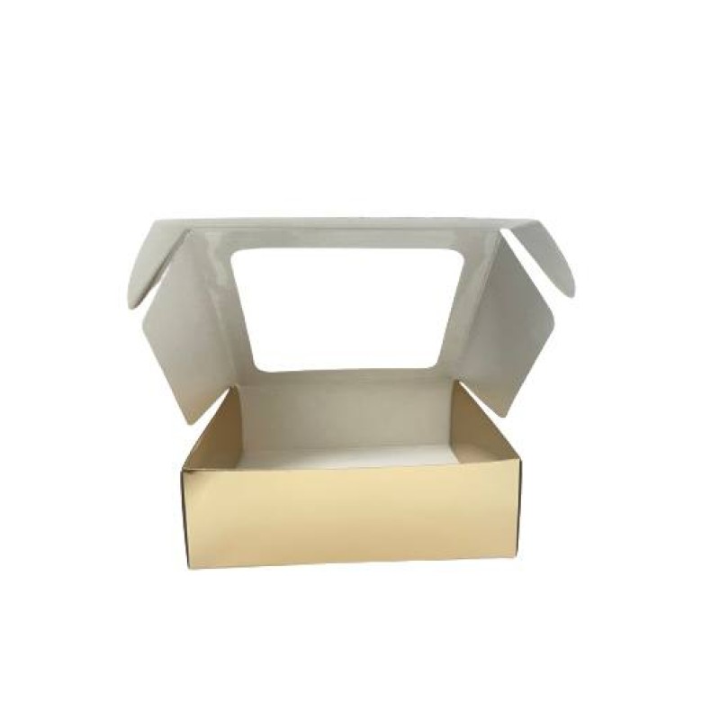 Коробка з прямим вікном для макаронс, зефіру, еклерів, золото.