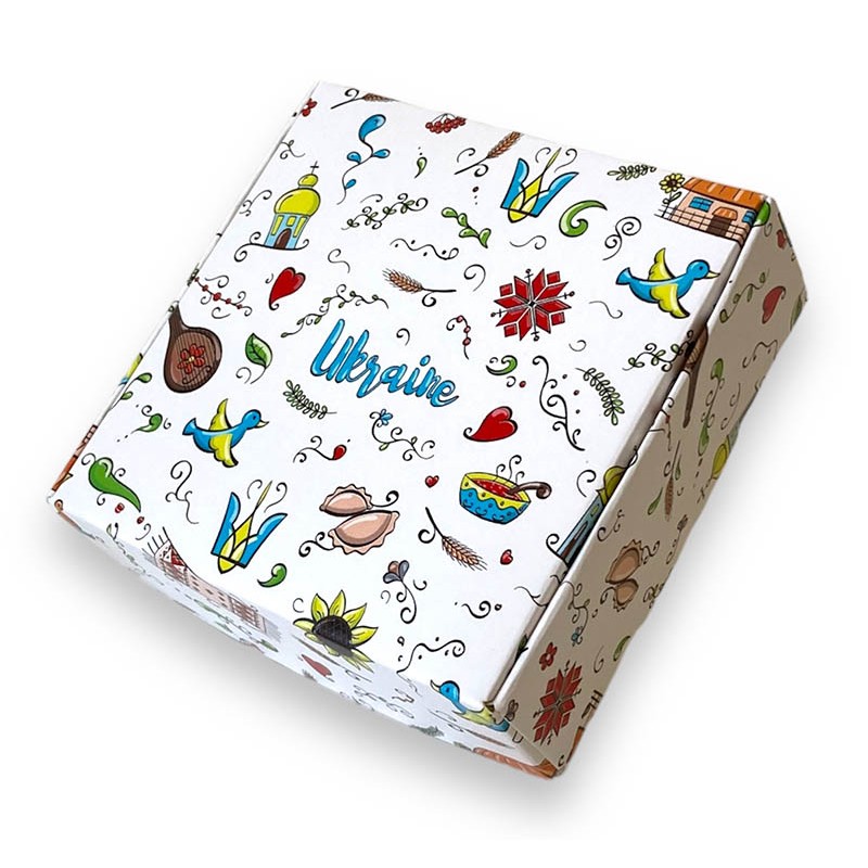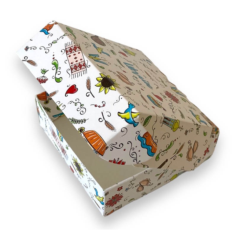 Картонна упаковка "Патріотична" для пряників, макаронc, еклерів без вікна.