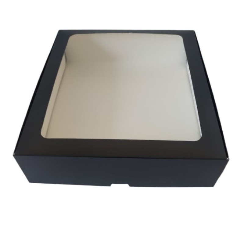 Коробка для макаронс, еклерів, пряників "Чорна" з вікном.Розмір:довжина - 24 смширина - 20 смвисота - 5...
