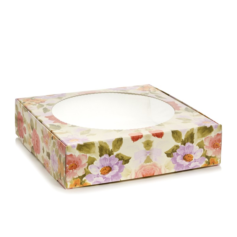 Коробка для макаронс, пряників з віконцем "Півонія", Підкладка в подарунок!Розмір: 200 х 200 х 50 мм...