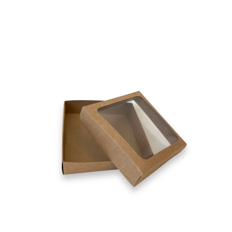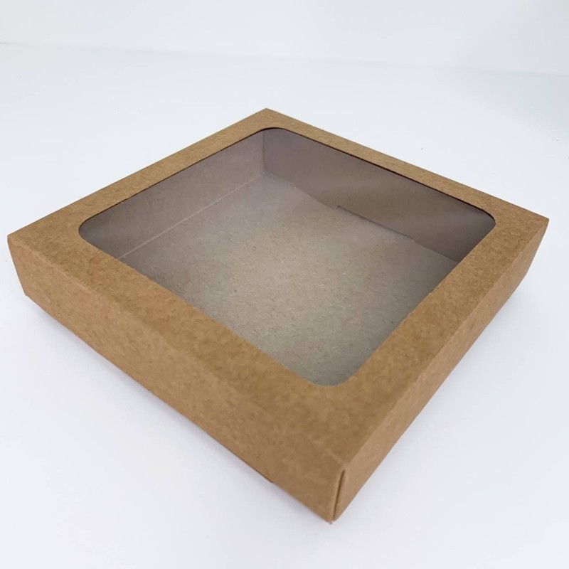 Коробка для пряників із крафту з квадратним вікном. Кришка знімна.