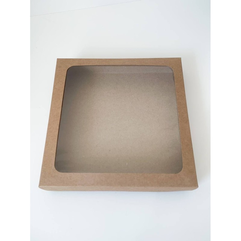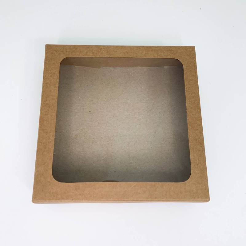 Коробка для пряників із крафту з квадратним вікном. Кришка знімна.