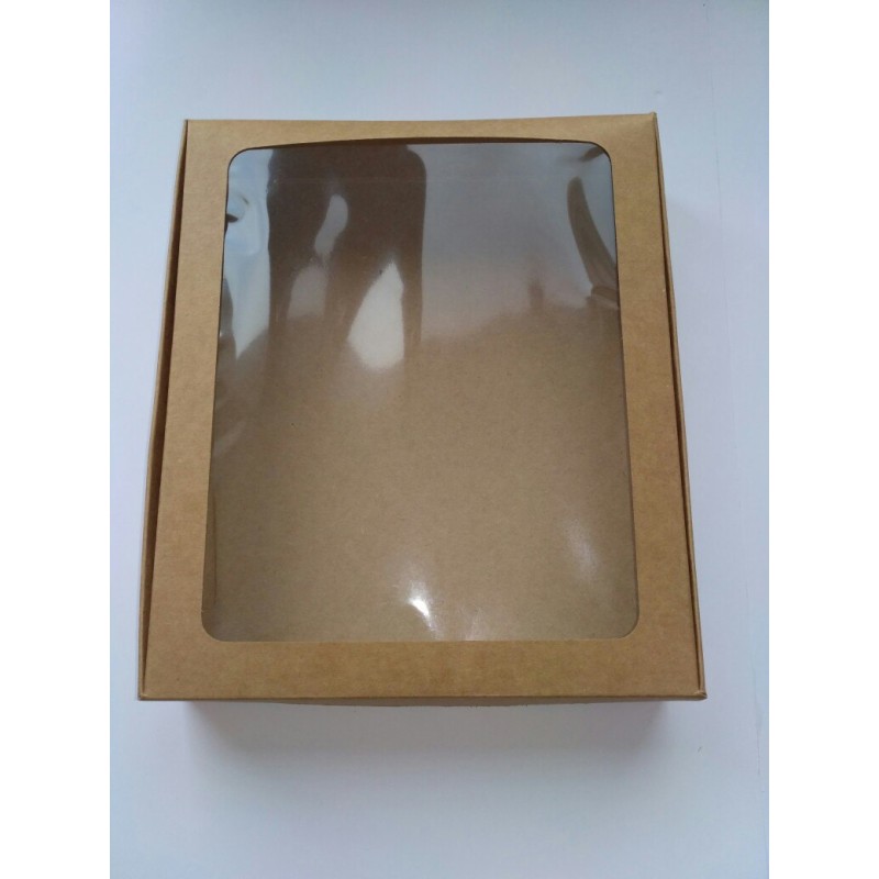 Коробка для макаронс, еклерів, пряників "Крафт" із вікном. Розмір:240*200*50 мм....
