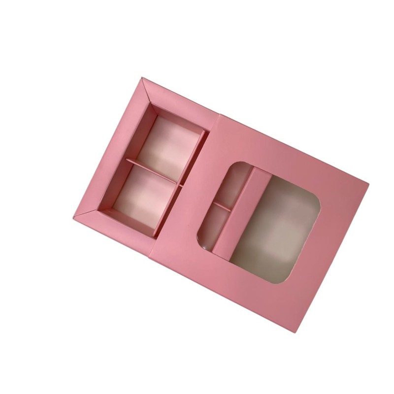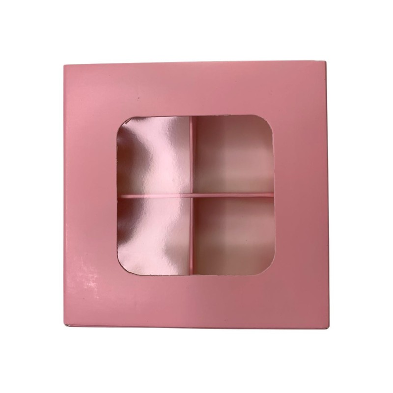 Коробка для 4 цукерок з бортиком з захисним лаком, рожева.