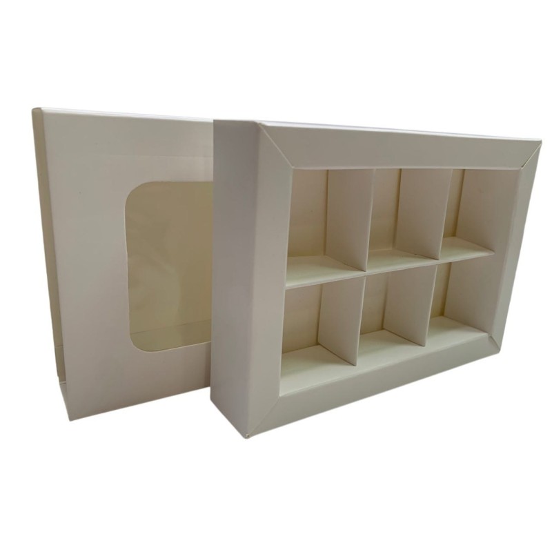 Коробка для 6 цукерок з бортиком.Розмір зовнішній - 151*108*30 мм.Розмір комірки - 40*41*30 мм.В вартість коробки...