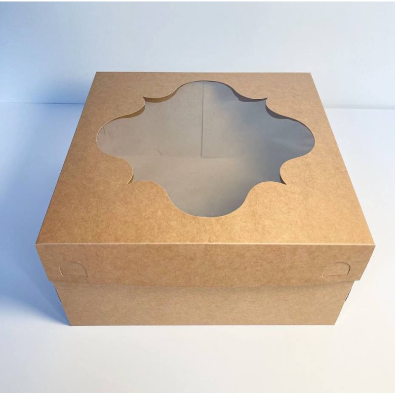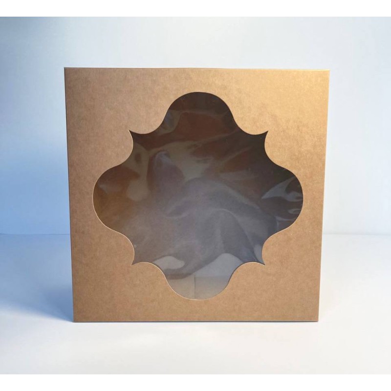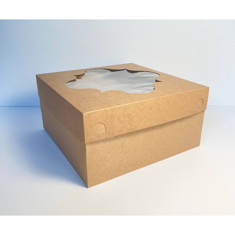 Картонна упаковка для торта з вікном, крафт.Розмір: довжина - 300мм.,ширина - 300мм.,висота - 150мм....