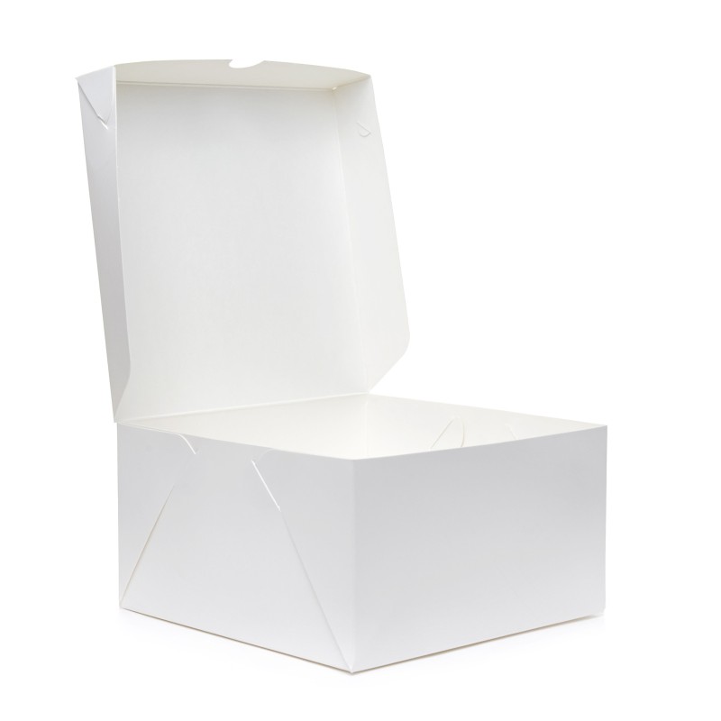 Цілісна коробка, виготовлена з якісного білого крейдованого картону. Призначена для тортів, бенто - тортів, тістечок, сувенирів.