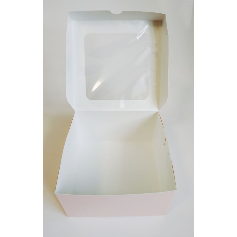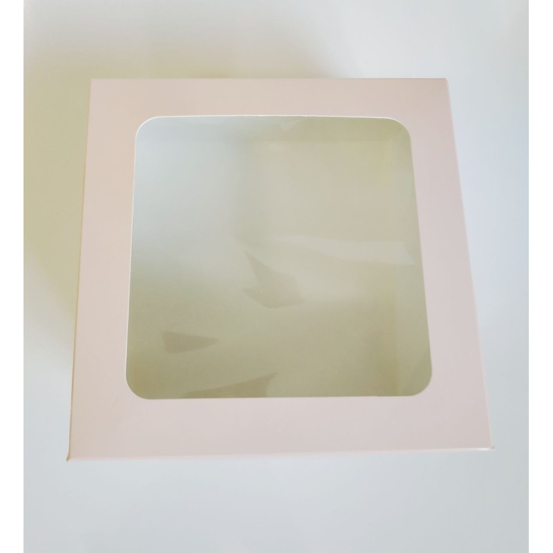 Цілісна коробочка з вікном, виготовлена з якісного білого крейдованого картону з печаткою кольору пудри. Підходить для тортів, бенто - тортів, тістечок, а також для сувенирів, виробів хенд - мейд.
