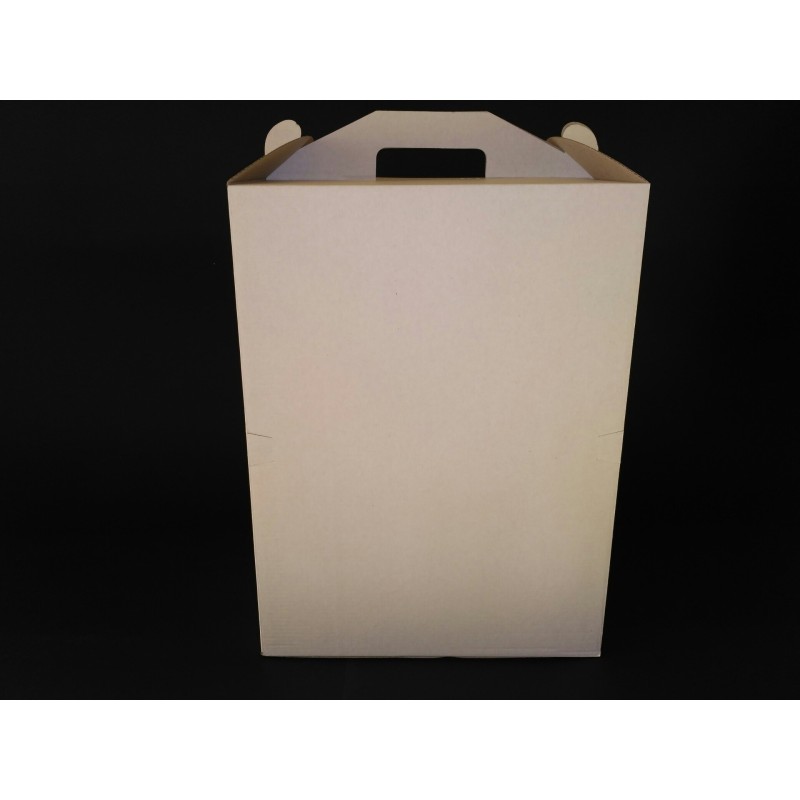 Картонна упаковка для торта або інших кондитерських виробів. Виготовлена із якісного тришарового мікрогофракартону, складається з двох частин. Захищає ваш виріб від пилу, вологи та потрапляння сонячних променів. Легко збирається, має зручну ручку. Розроблено з урахуванням побажань багатьох кондитерів. Презентабельно та зручно транспортувати готовий продукт.