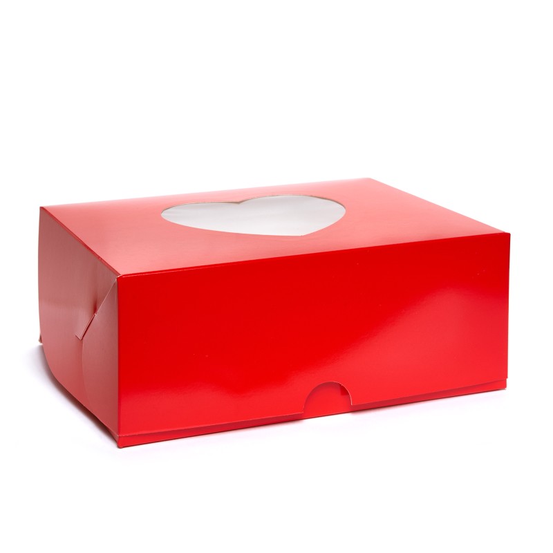 Коробка на 6 капкейків "Серце" червона.Цільна коробочка з вікном у вигляді серця, виготовлена з якісного білого...