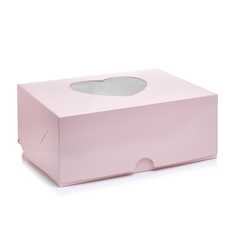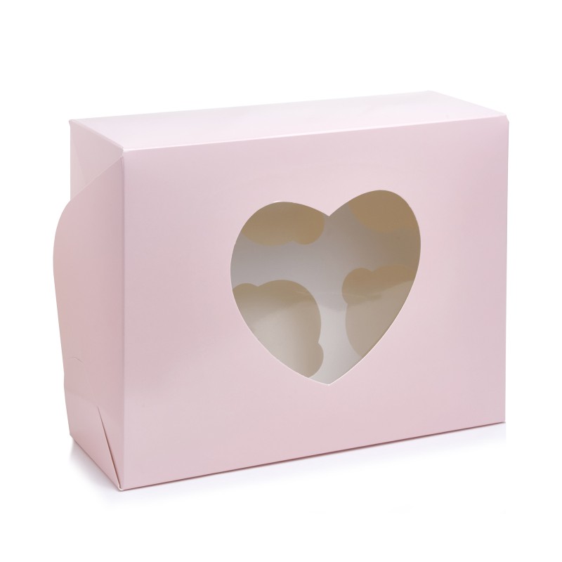 Цільна коробочка з вікном - плівкою у вигляді серця, виготовлена з якісного білого крейдованого картону з пудрової печаткою. Призначена для транспортування кондитерських виробів, що захищає від попадання пилу, вологи, сонячних променів. Випікання зберігає свій первісний вигляд, не деформується під час перевезення. Капкейки надійно фіксуються всередині завдяки вкладкам, які можна прибрати. Коробка також використовується для подарунків, сувенірів, зокрема до таких свят, як 8 березня та День Святого Валентина.