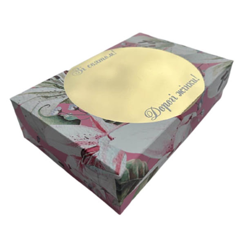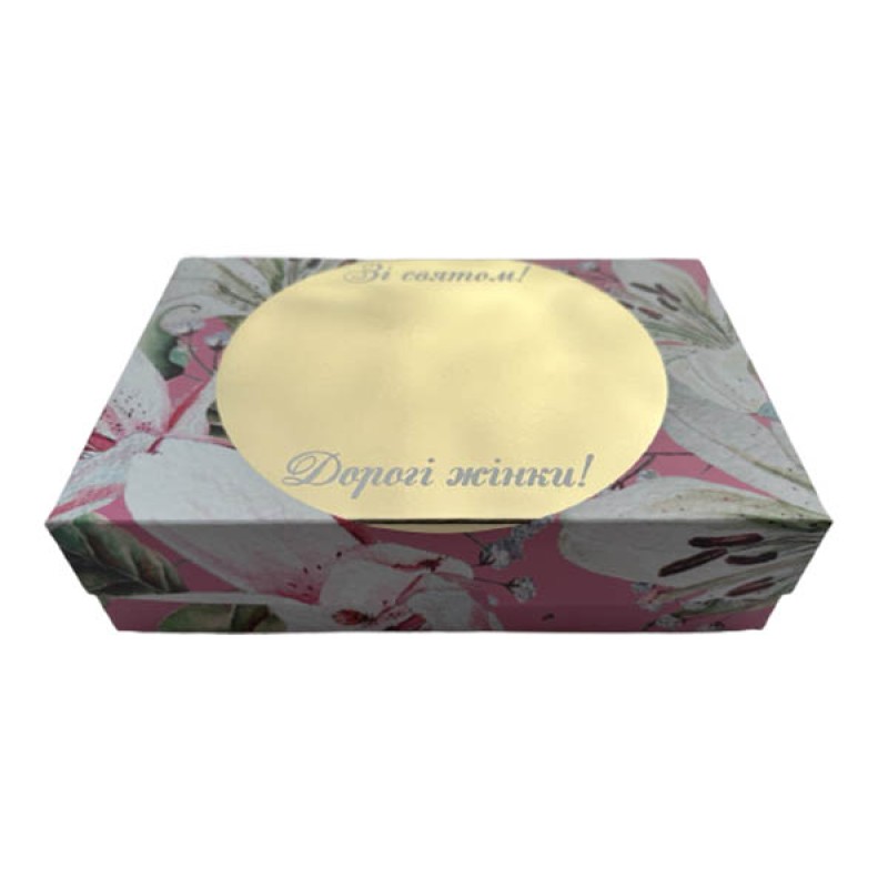 Коробка "Зі святом, дорогі жінки!" для еклерів, лілія.Розмір:довжина - 22,5 смширина - 15 см висота - 6...