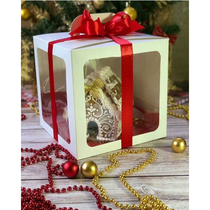 Коробка для пряничного будиночка, паски, торта тощо. Виготовлена із якісного щільного білого крейдованого картону....