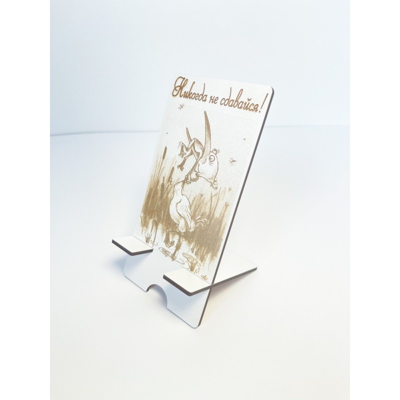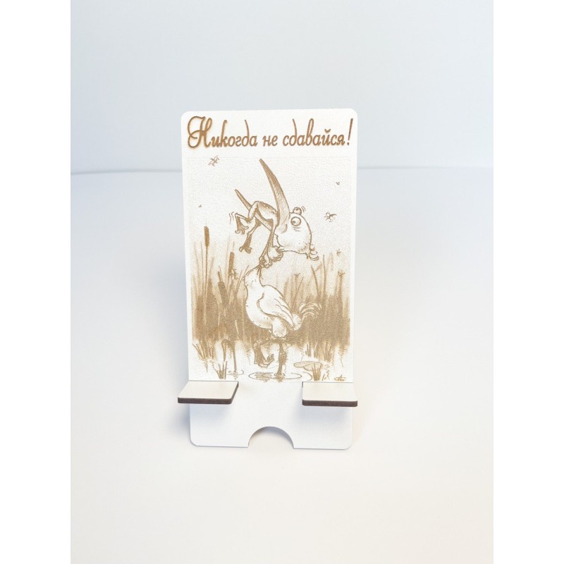 Подарункова підставка для мобільного телефону із дерева "Никогда не сдавайся".