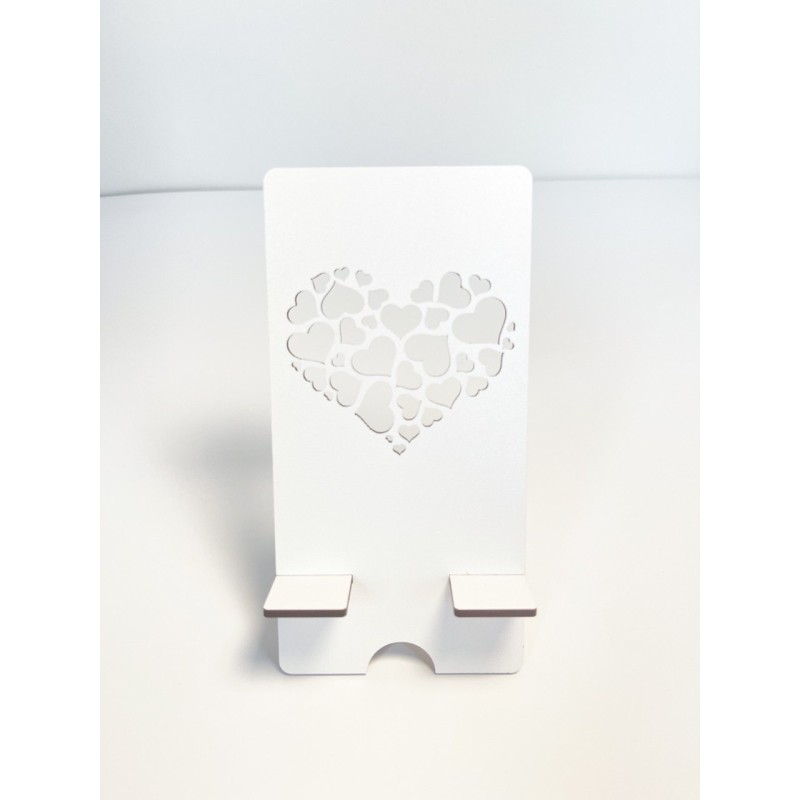Подарункова підставка для мобільного телефону із дерева "Серце" з лазерним розписом.
