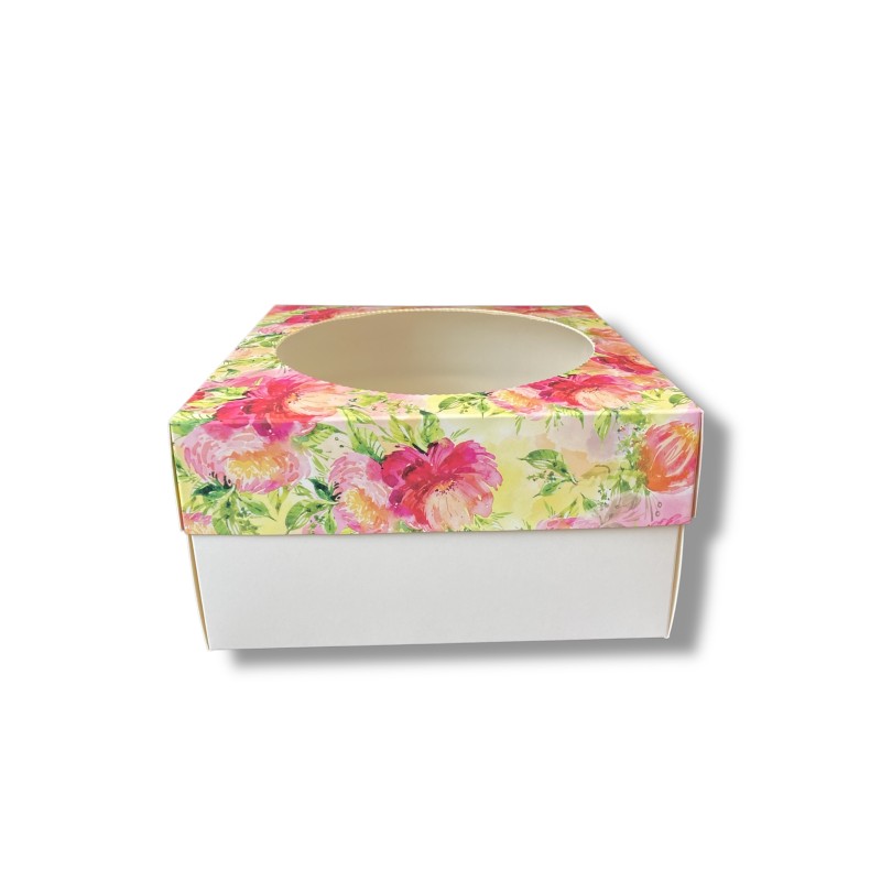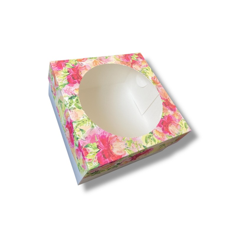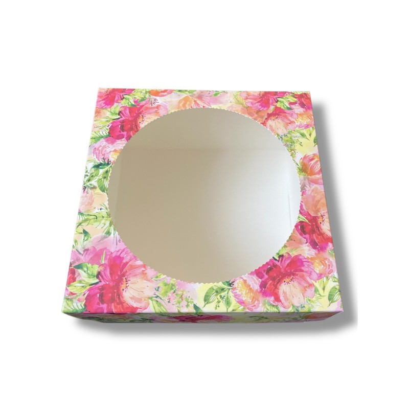 Коробка "Квіти Акварель" з круглим вікном із двох частин. Виготовлена з якісного крейдованого картону