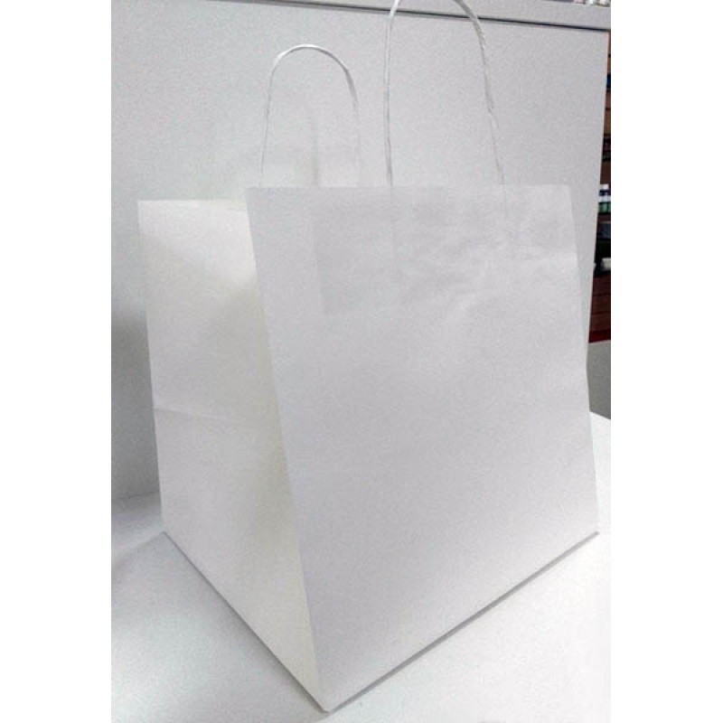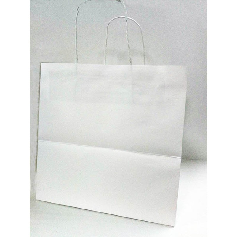 Білий крафт пакет 120гр/м2 з бумажними ручками і картонним дном, що робить пакет більш ефективним. Цей подарунковий пакет легко вмістить коробки для: